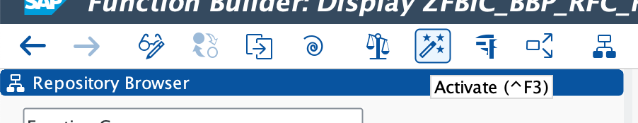 해당 트랜잭션 페이지에서는 내가 개발한 함수 모듈을 테스트 및 디버깅할 수 있다는 장점도 존재한다. 우선, 개발한 함수 모듈을 디버깅 하기 위해서는 Activate (활성화) 상태로 변경되어야 하고, 그 후에 Execute (실행)를 진행하여 함수 모듈이 의도대로 동작하는지 파악할 수 있다.